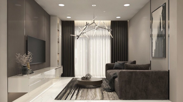 Căn hộ mang phong cách hiện đại với tông màu trung tính tạo nên vẻ đẹp thanh lịch ấm áp. Thiết kế mở kết nối phòng khách, bếp và bàn ăn giúp không gian thông thoáng, tối ưu diện tích sử dụng. Nội thất tối giản nhưng linh hoạt, đề cao công năng và sự tiện nghi, mang đến trải nghiệm sống thoải mái mà vẫn đảm bảo giá trị thẩm mỹ cao.